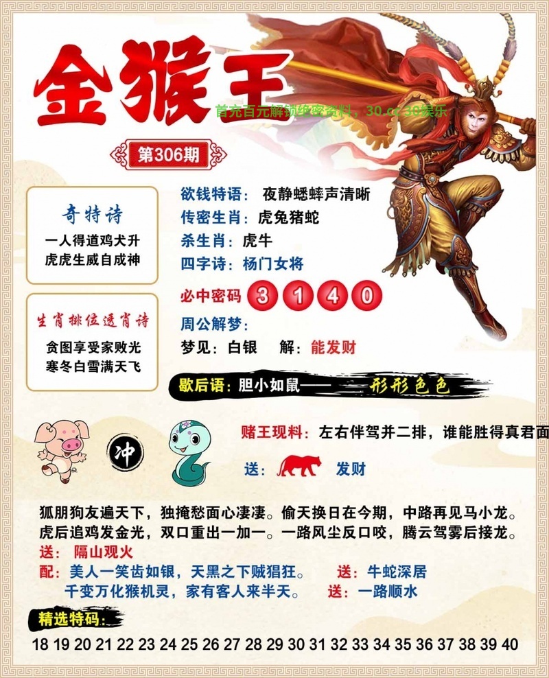 | 302期:绝杀二肖〖鼠猪〗开:猴22准 |