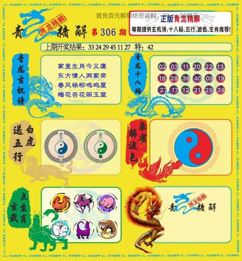 | 306期:复式连肖『牛虎兔龙马猪』中4个 |